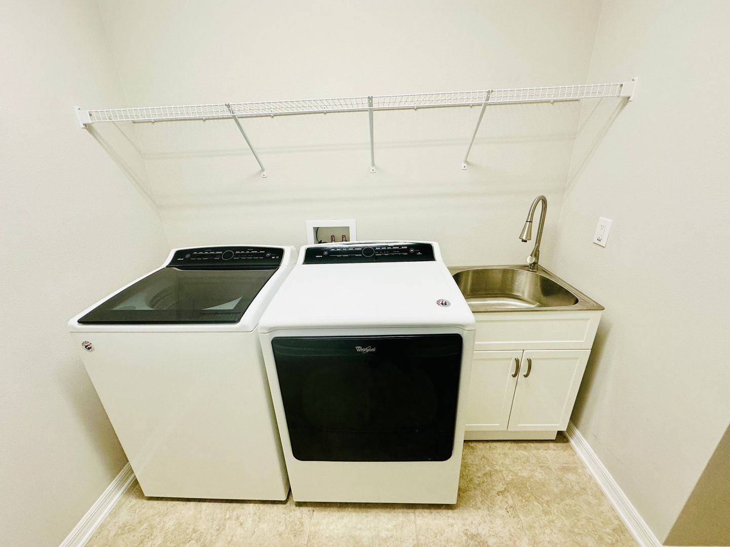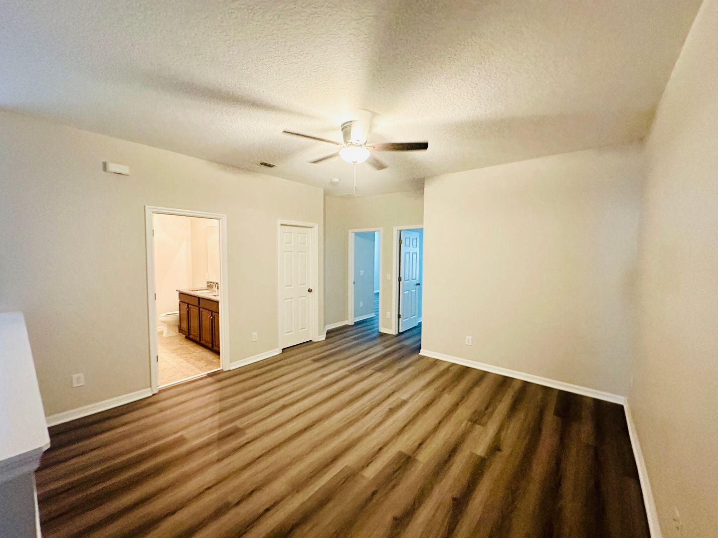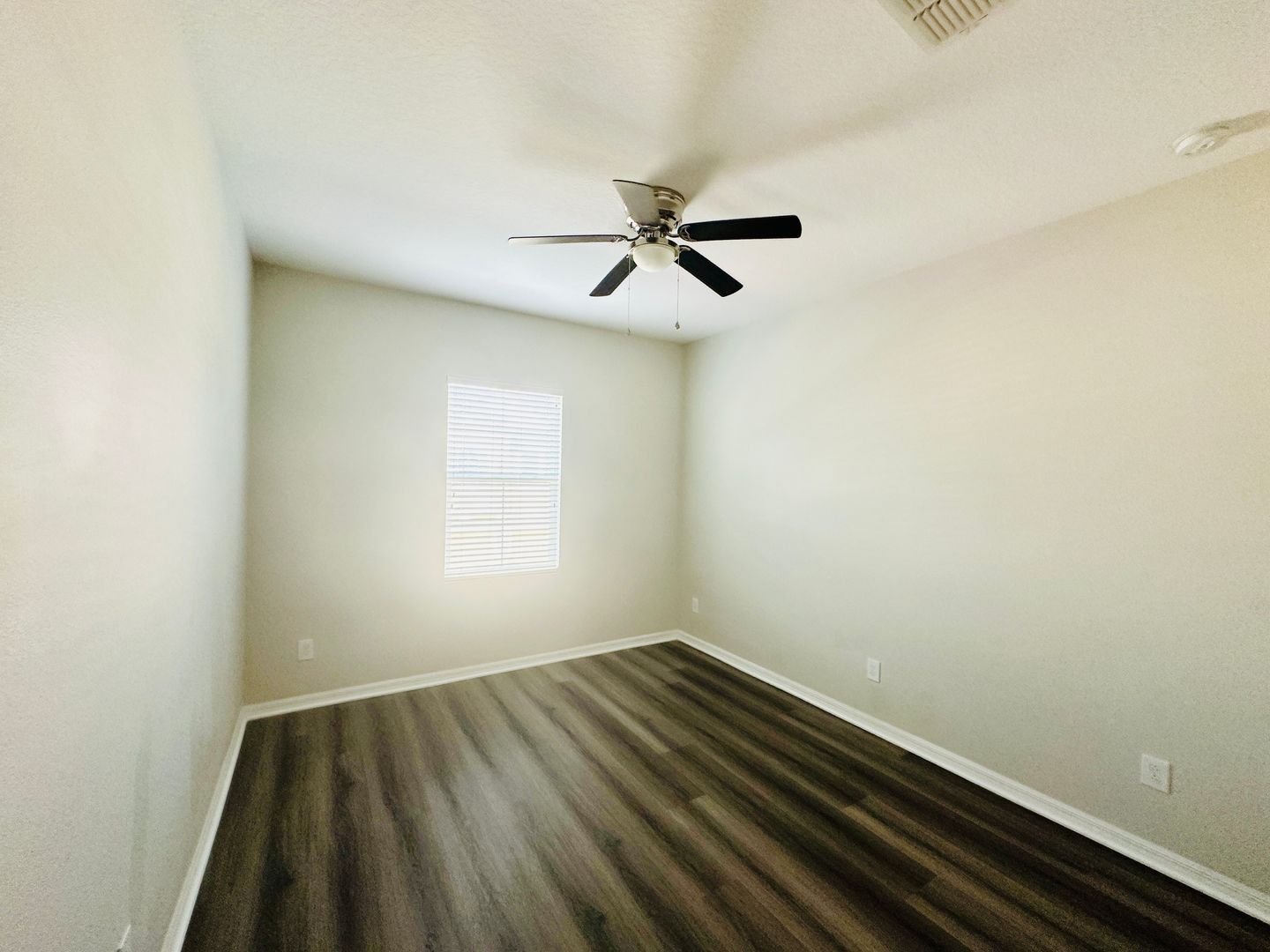 The residence features 4 bedrooms, 2.5 bathrooms, and a 2-car garage, with new luxury vinyl flooring throughout. A grand high-ceiling foyer welcomes you into a spacious living area and open kitchen with granite countertops, rich wood cabinetry, and stainless-steel appliances. The first-floor primary suite offers dual stone-top vanities and walk-in closets.