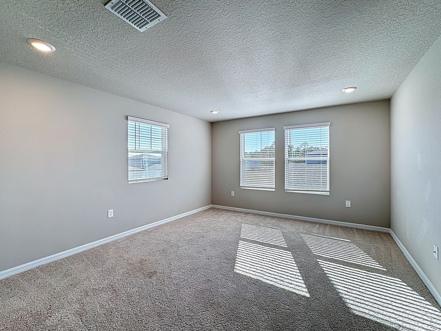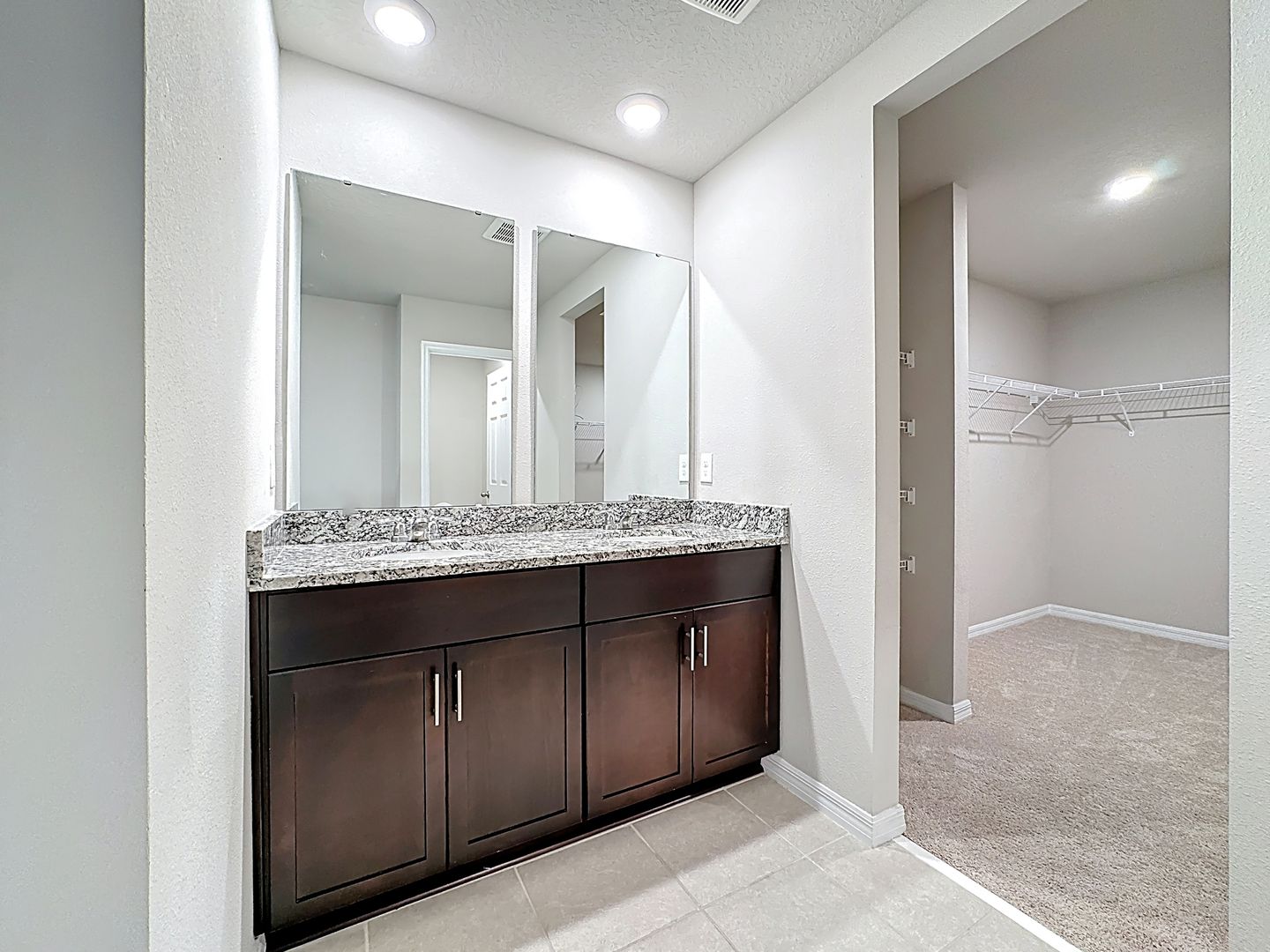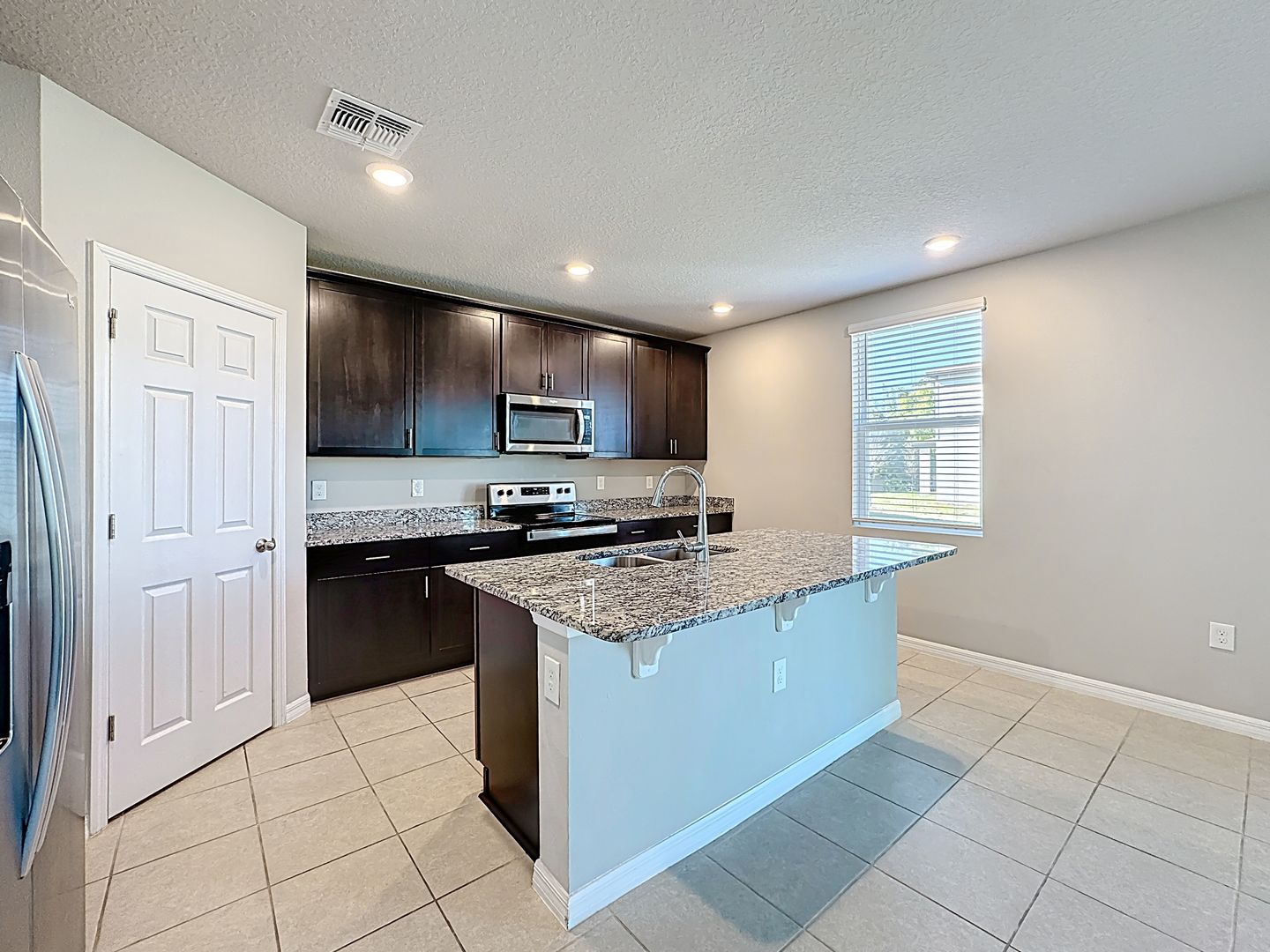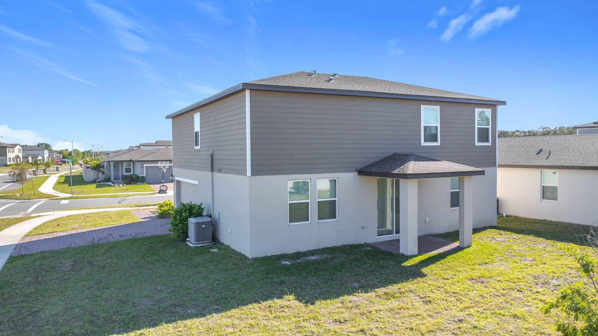 As you enter this two-story, energy-efficient house, you'll be greeted by the warm atmosphere created by the high ceilings and flexible room. The home has four bedrooms and three full bathrooms, as well as a two-car garage. The kitchen and all other areas of the house feature quartz countertops, and the hallway, kitchen, and wet areas have 18x18 porcelain tile flooring. The first floor includes a guest room, while the second floor houses the master bedroom and two additional rooms. There is also a generously-sized den that would be perfect for a home office or game room. The community is just a few minutes from Norcoossee Road, providing easy access to Medical City and the airport. Come see it for yourself and make it your home.