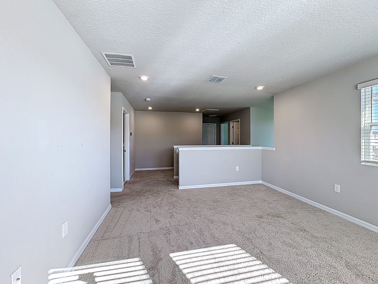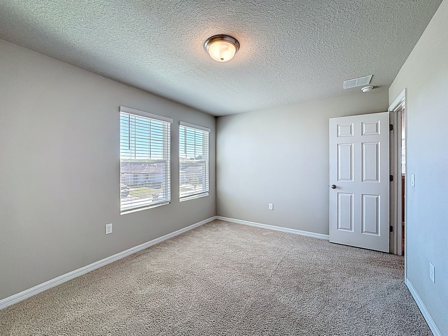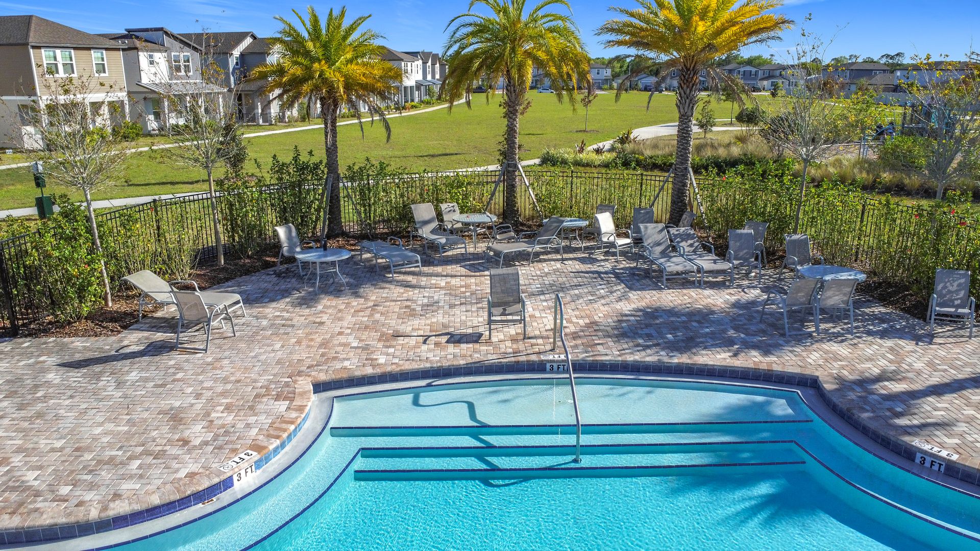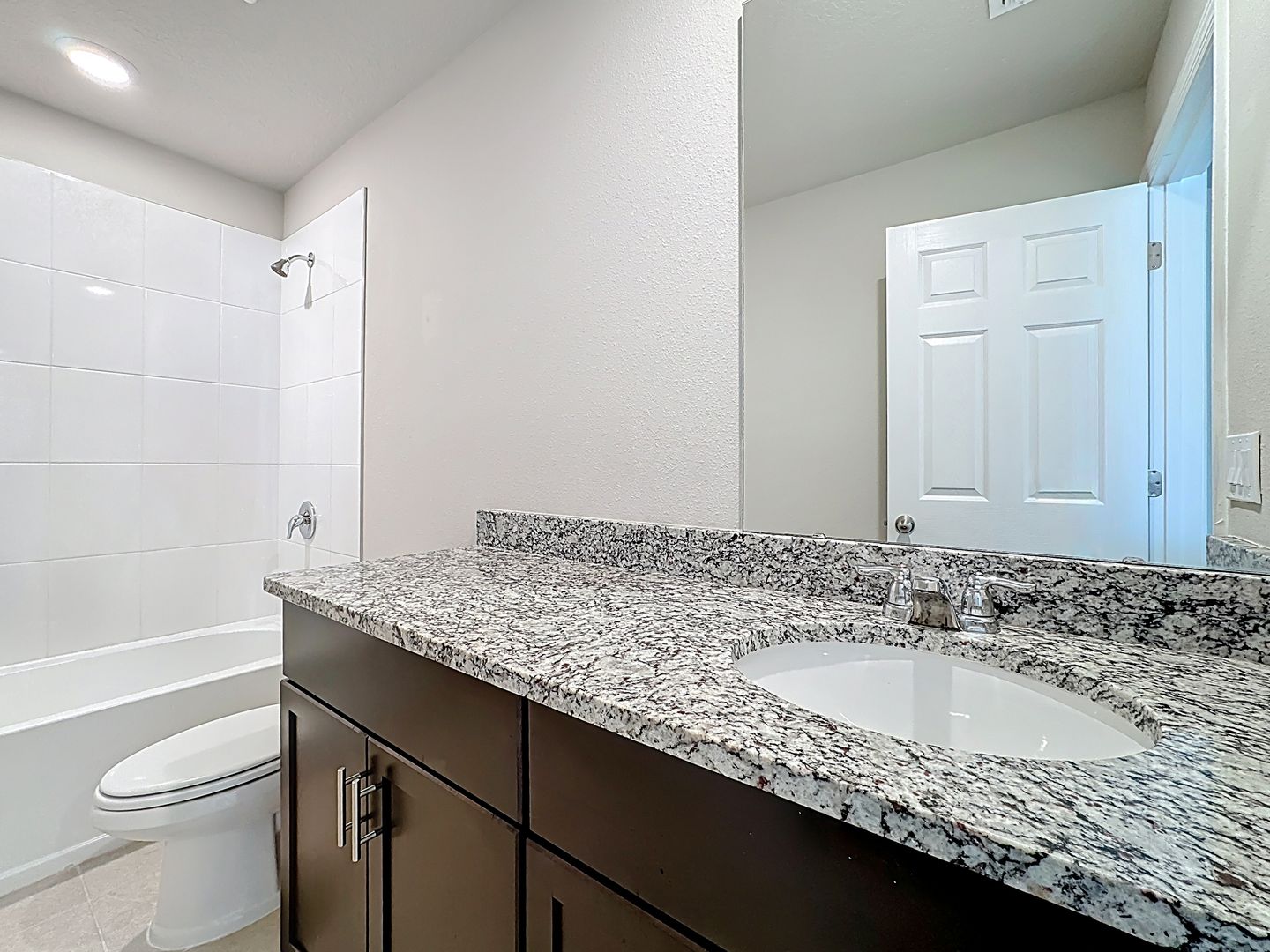As you enter this two-story, energy-efficient house, you'll be greeted by the warm atmosphere created by the high ceilings and flexible room. The home has four bedrooms and three full bathrooms, as well as a two-car garage. The kitchen and all other areas of the house feature quartz countertops, and the hallway, kitchen, and wet areas have 18x18 porcelain tile flooring. The first floor includes a guest room, while the second floor houses the master bedroom and two additional rooms. There is also a generously-sized den that would be perfect for a home office or game room. The community is just a few minutes from Norcoossee Road, providing easy access to Medical City and the airport. Come see it for yourself and make it your home.